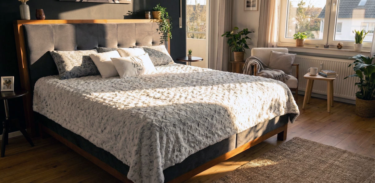 Flauschige Wohndecke mit Felloptik