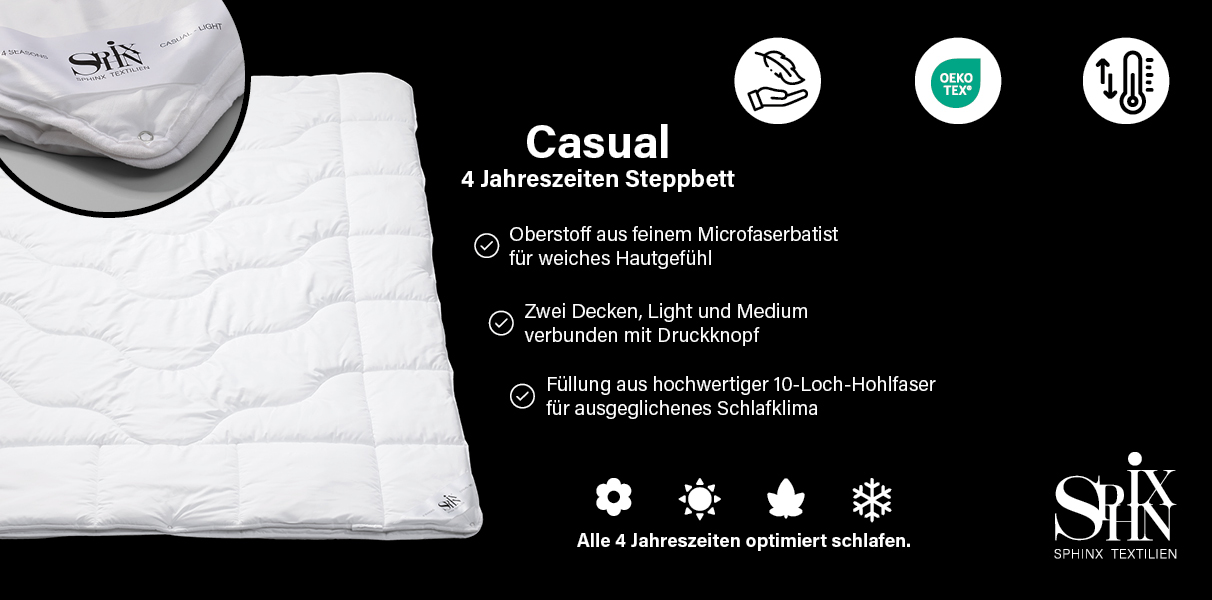 Vorteile des Sphinx Casual 4-Jahreszeiten Steppbett