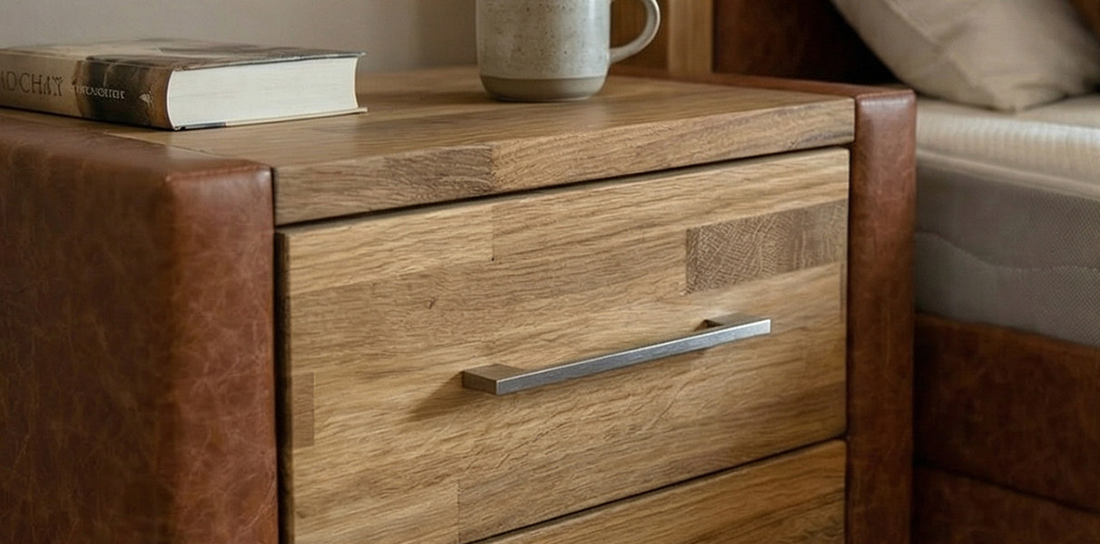 Echtleder trifft Massivholz – die Details
