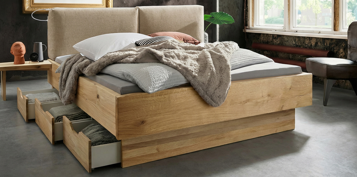 Forestales Massivholz-Bettrahmen und Kissen-Kopfteil mit Inside Wasserbett