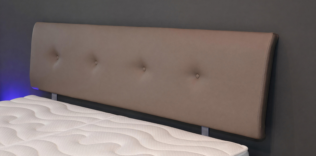 - Schwebend an der Wand – das Kopfteil scheint frei hinter dem Bett zu schweben, ideal für einen modernen, reduzierten Look.