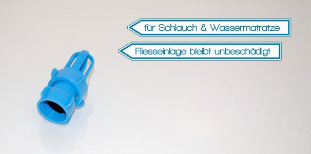 Mit diesem Adapter lässt sich jede Wassermatratze mittels eines handelsüblichen Schlauchs befüllen.