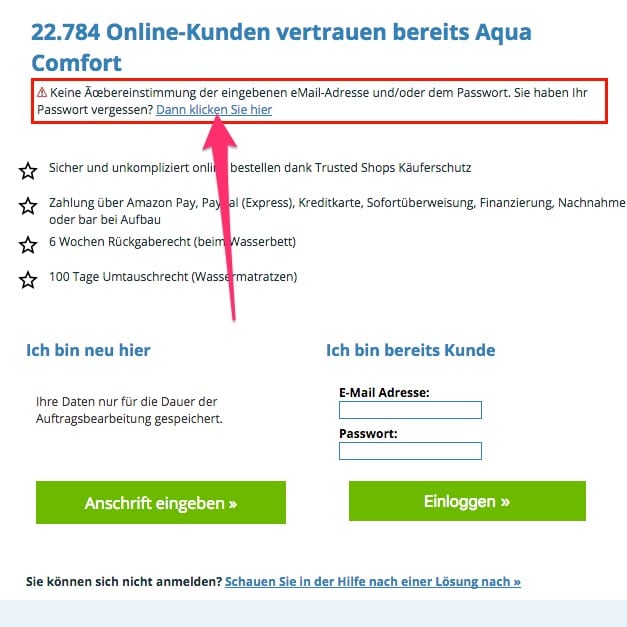 Fehler bei Bestellung ohne Login